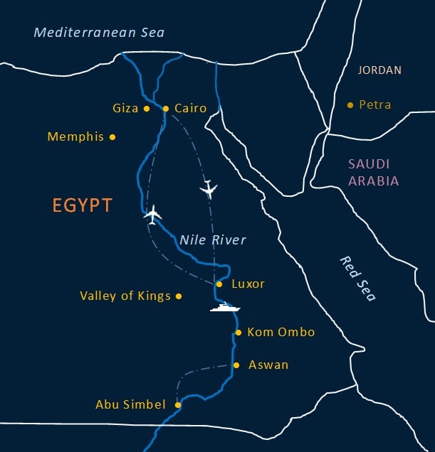 Afterwards, enjoy a delicious lunch featuring local and international cuisine. Then, visit the Mosque of Muhammad – also known as the Alabaster Mosque – which majestically sits on the summit of the Citadel of Saladin’s courtyard. From the arcaded courtyard, enjoy the breathtaking view across the city to the Pyramids of Giza. Inside the Mosque, marvel at an ornate interior and a splendid array of lamps suspended from the intricately decorated ceiling. Afterward, join an evening Welcome Reception hosted by your Cruise Manager. (Breakfast, Lunch, Welcome Reception)