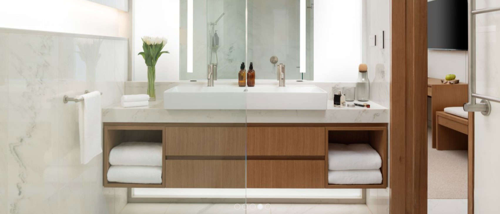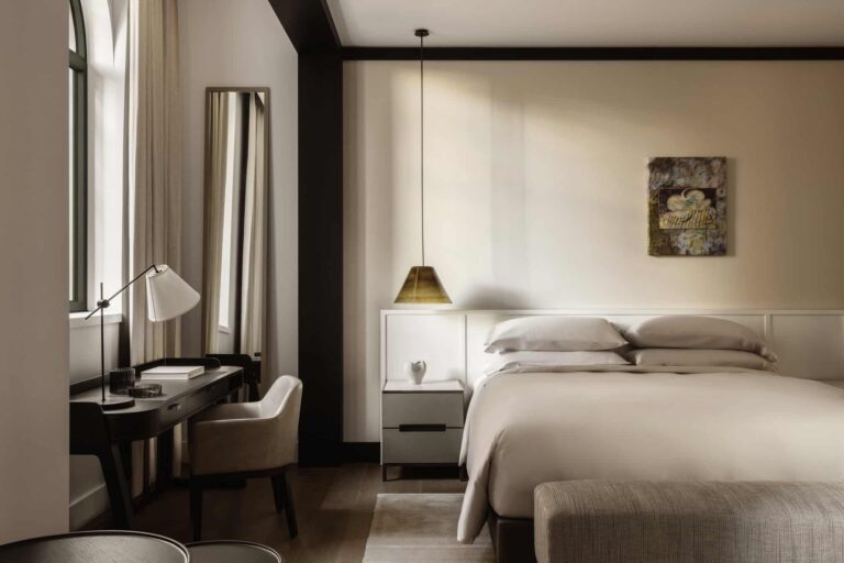 River Rooms provide views of the Yarra River, complemented by details like lush greenery and filtered water taps. They feature king beds (two queen for twin sharing), a desk workspace, seating area, included wi-fi, filter water taps, coffee machines, Bamford bath products, soft cotton robes and slippers.