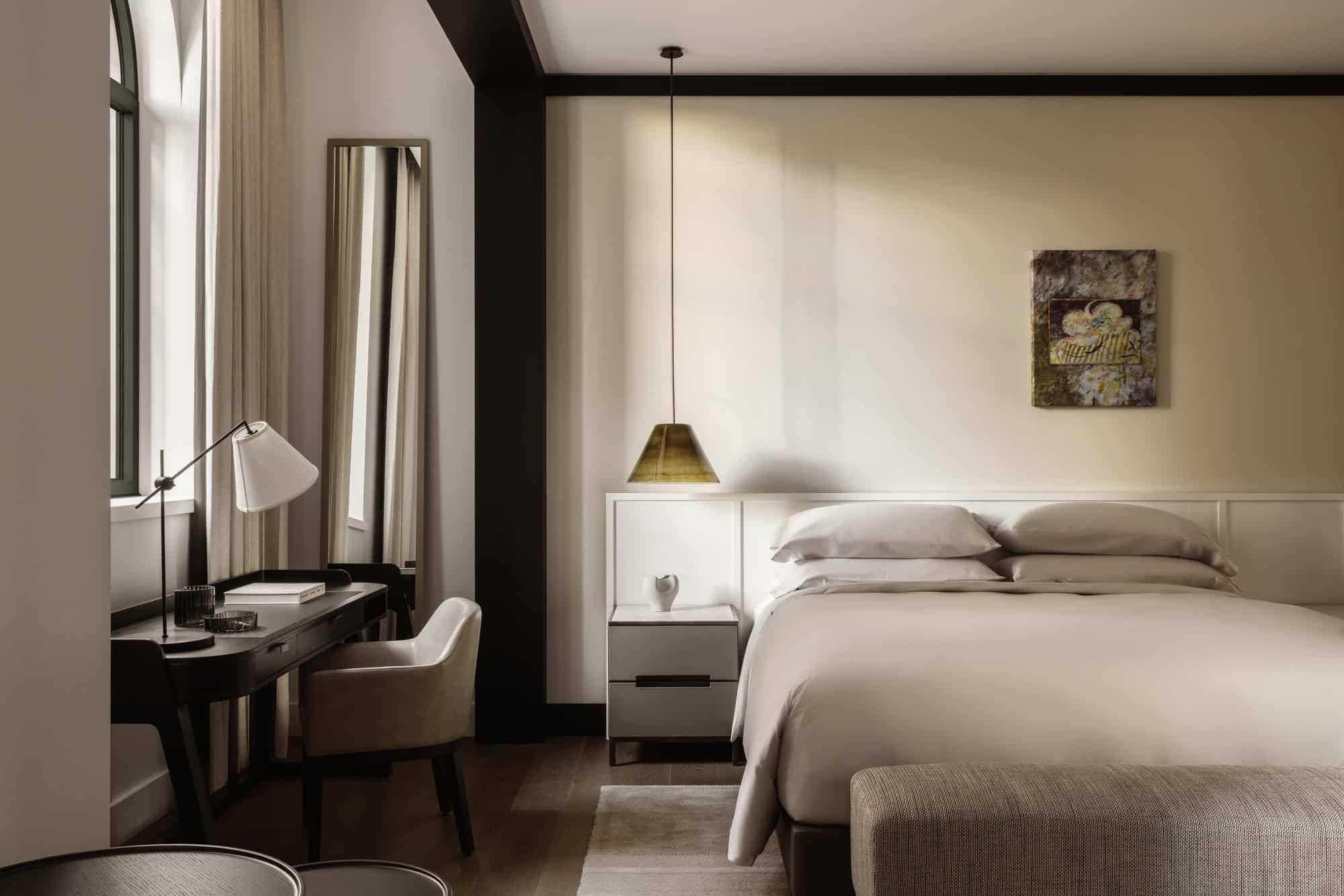 Premier Rooms feature Super King or Twin beds, Capella Living Room access, exclusive access to Wellness center, complimentary pressing of five laundry items, complimentary non-alcoholic refreshments, Bamford bathroom amenities, personal bar, wine fridge, Nespresso machine, and more.