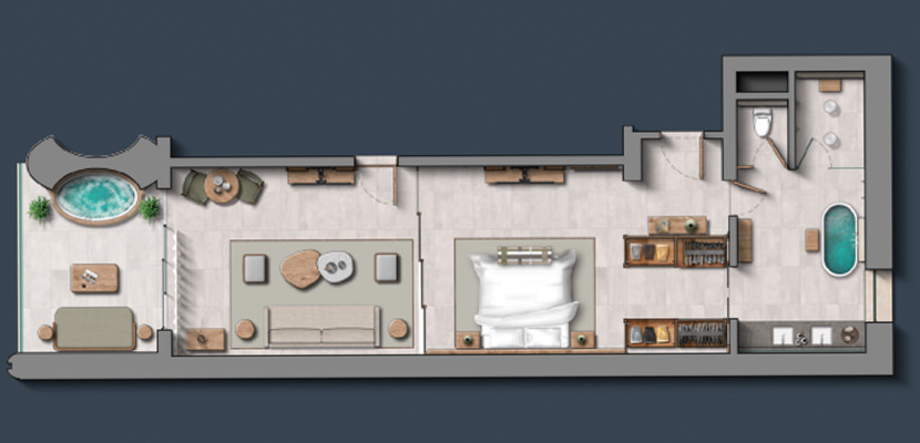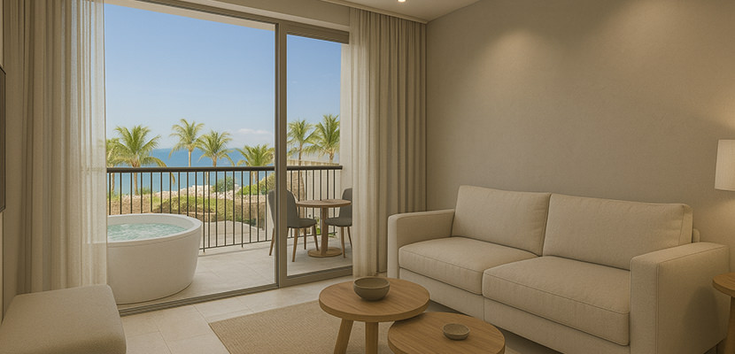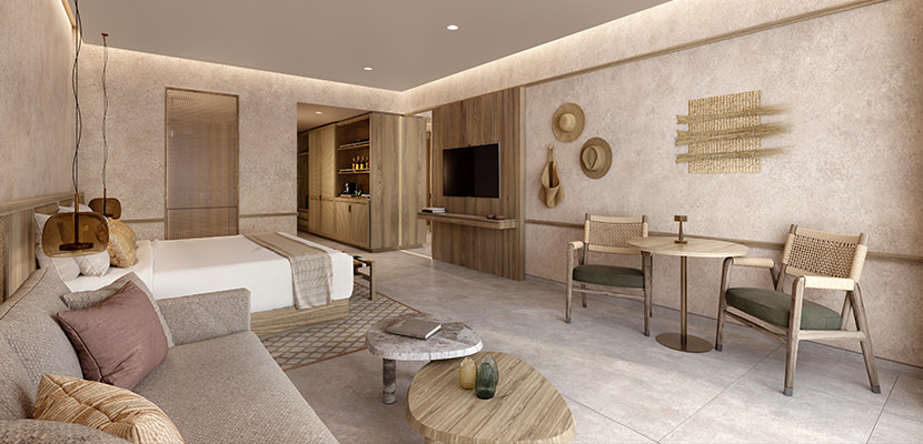 Room descriptions, sizing, and view specifics have been provided to VACAYA by UNICO and neither VACAYA nor Purple Light Vacations is responsible for incorrect information. Room layouts and views can vary within the same category. Some of the images are renderings since this is a brand new resort and final layouts and décor may vary.