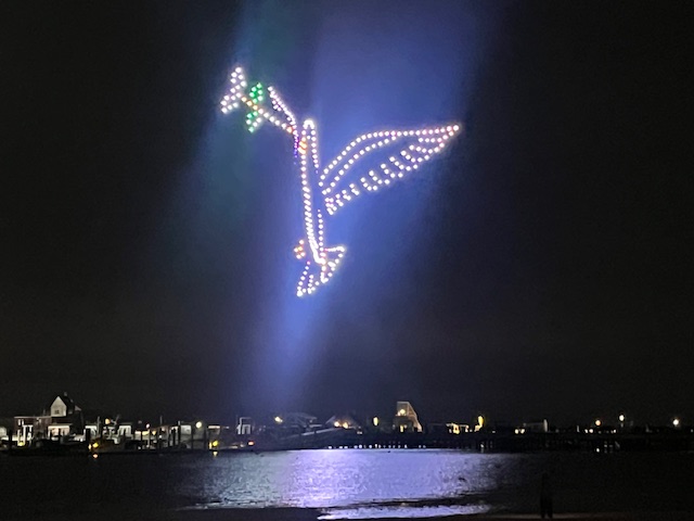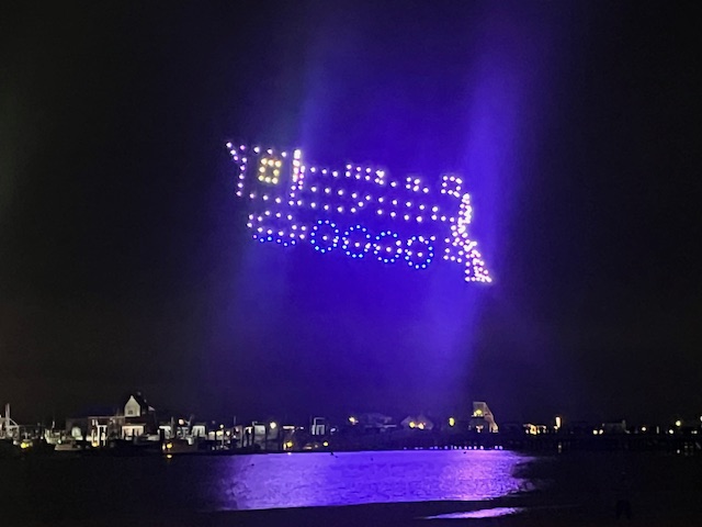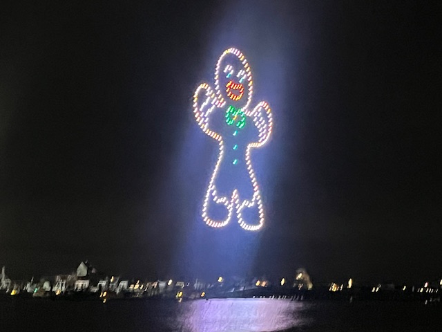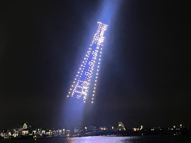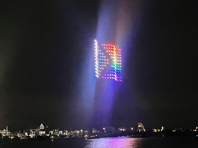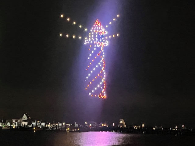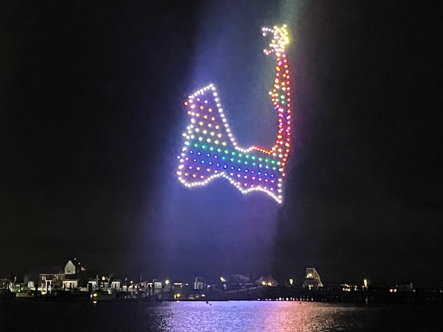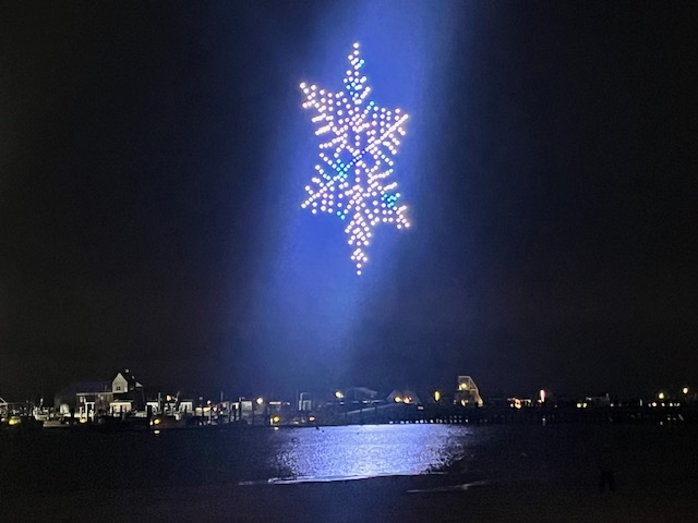 Here are some photos from the first New Year’s drone show that Provincetown has done and that we saw and enjoyed.